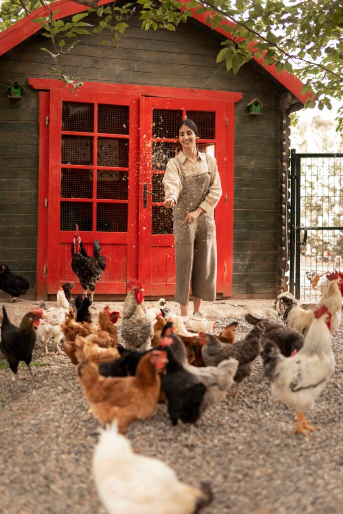 For layers, provide nesting boxes and perches. Each bird should have enough space to move comfortably. Overcrowding leads to stress and lower egg production.